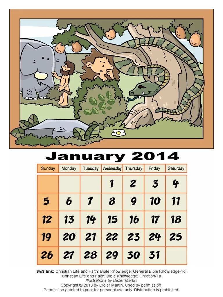 3D Calendar Old Testament January 2014 Adam And Eve Genesis