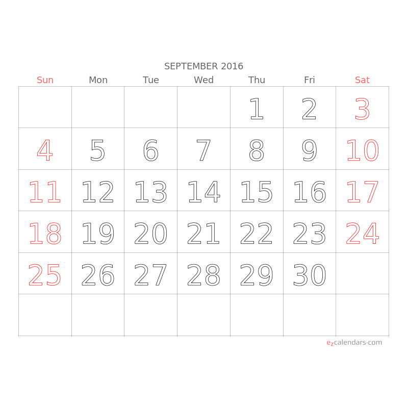 Big Letters, Big Numbers Monthly Calendar EzCalendars