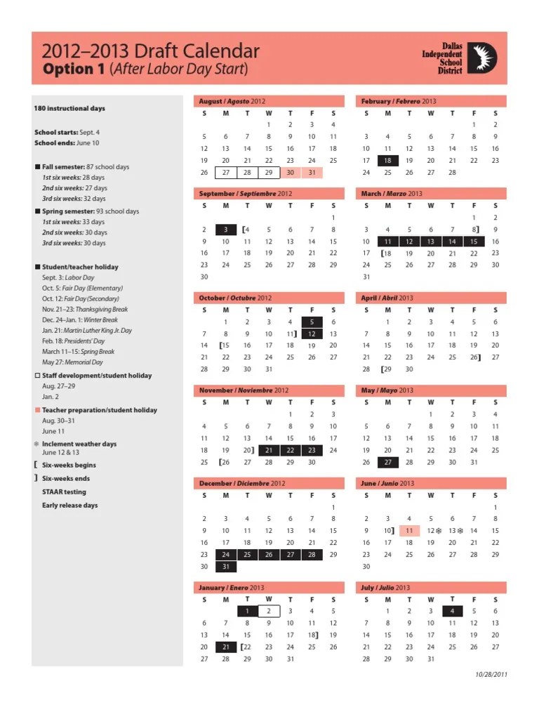 DISD Options For 20122013 School Year Calendar PDF Academic Term