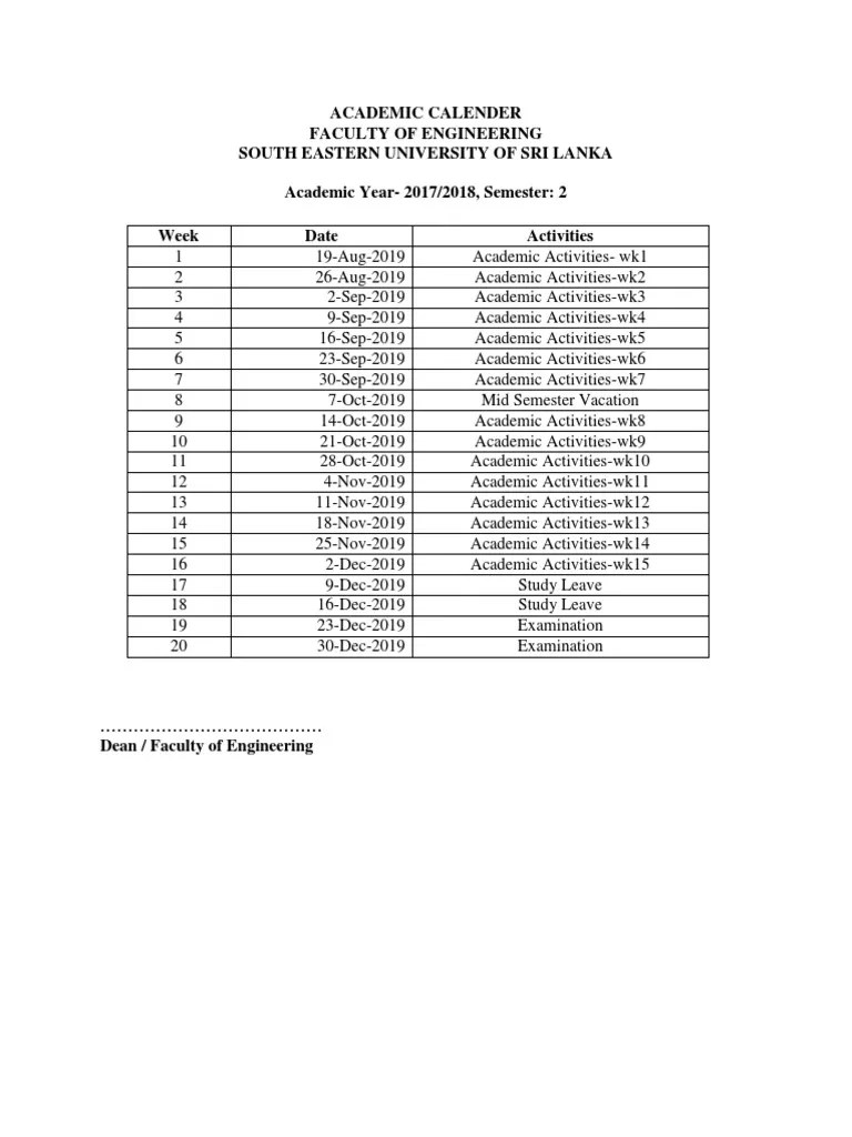 Academic Calender Semester 2 (E17) PDF
